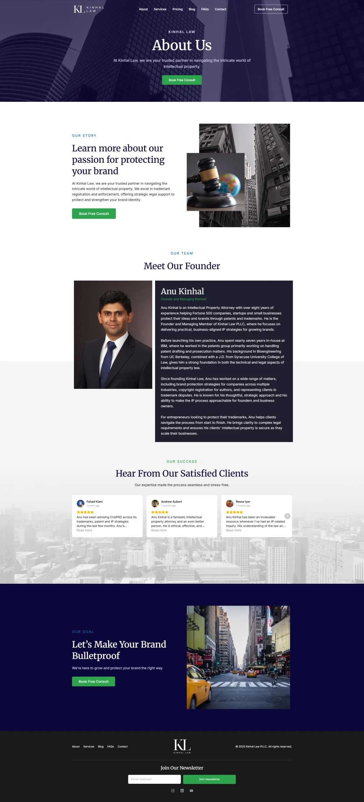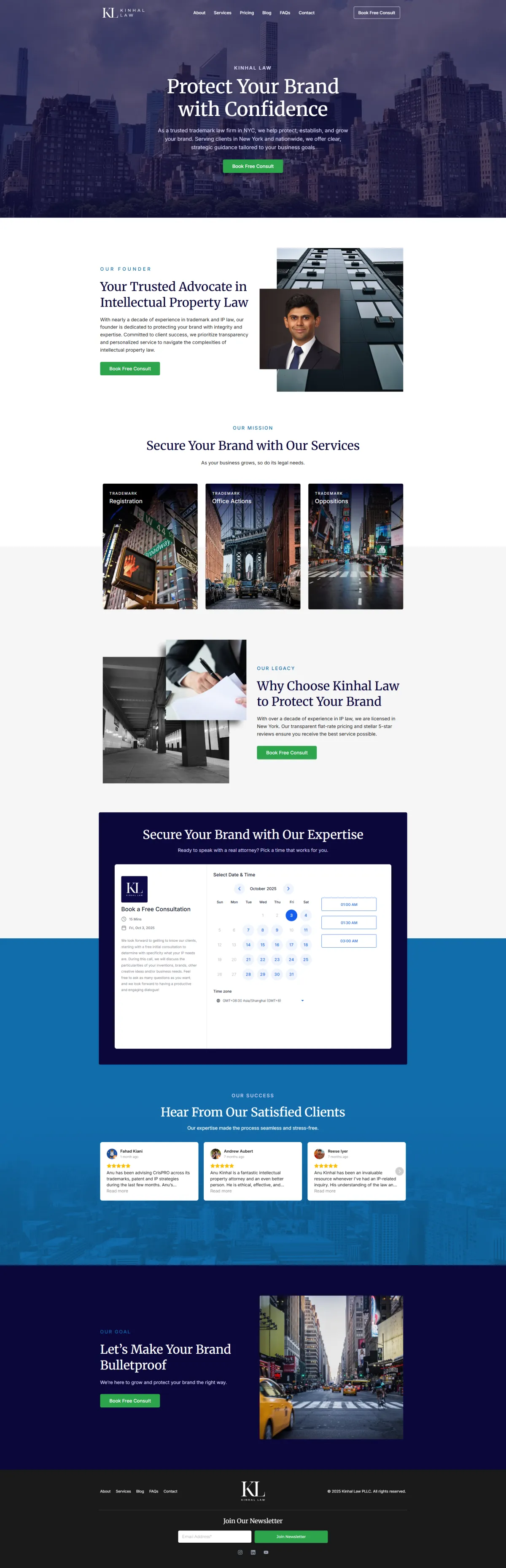 Kinhal Law’s site generated traffic but failed to convert. Confusing service messaging, manual onboarding, and wasted SEO spend limited growth. With consultation conversions around 1% and admin-heavy intake, trademark services couldn’t scale. A redesign was needed to clarify offerings, streamline conversions, and automate touchpoints while protecting existing search equity and revenue potential.