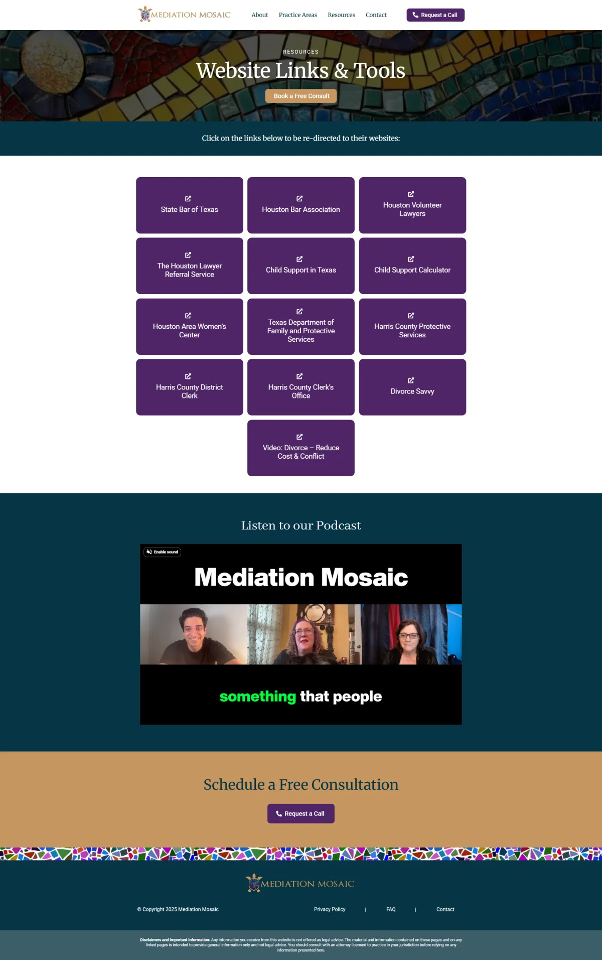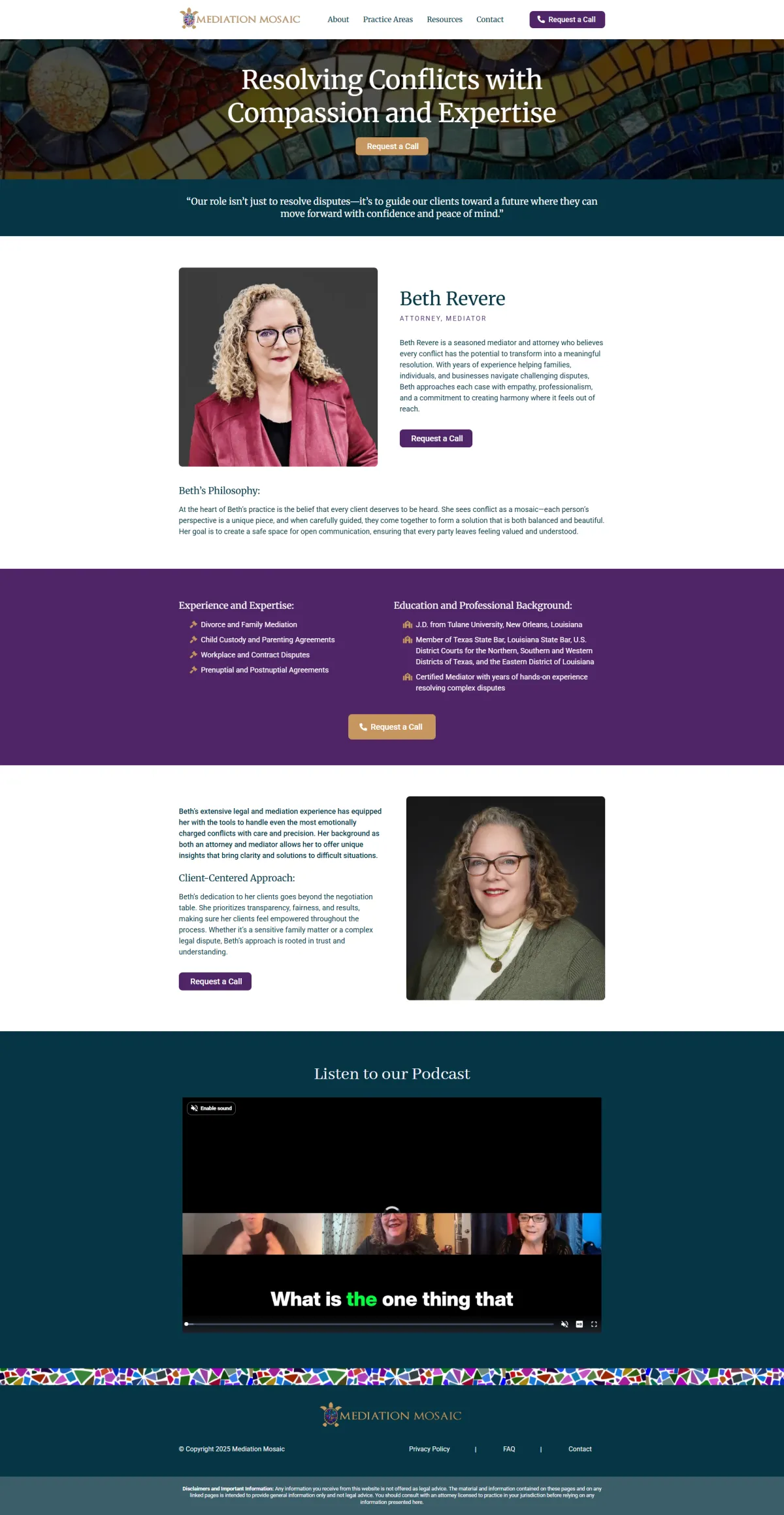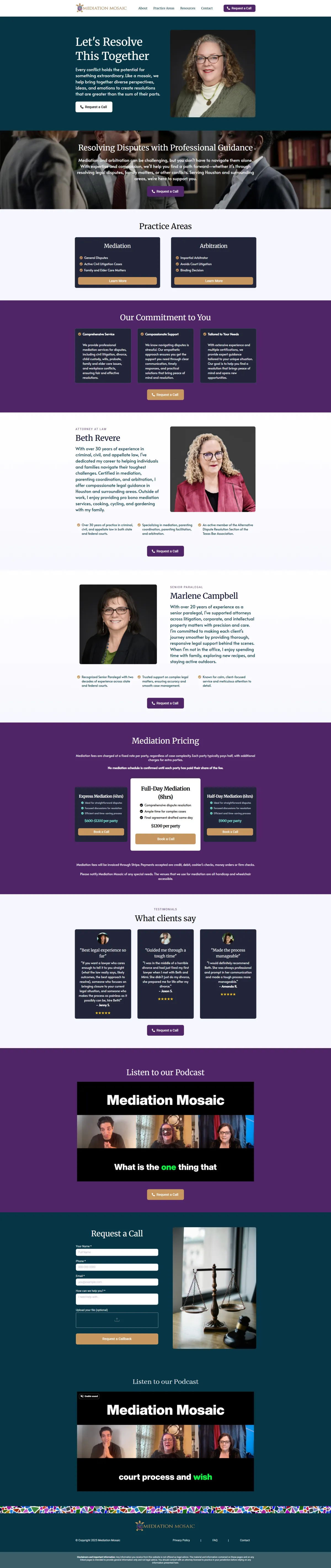 Mediation Mosaic streamlined onboarding and refreshed its brand by implementing dynamic engagement letters, integrating booking and payments, and unifying website design, halving onboarding time and increasing consultation bookings for a smoother client experience.